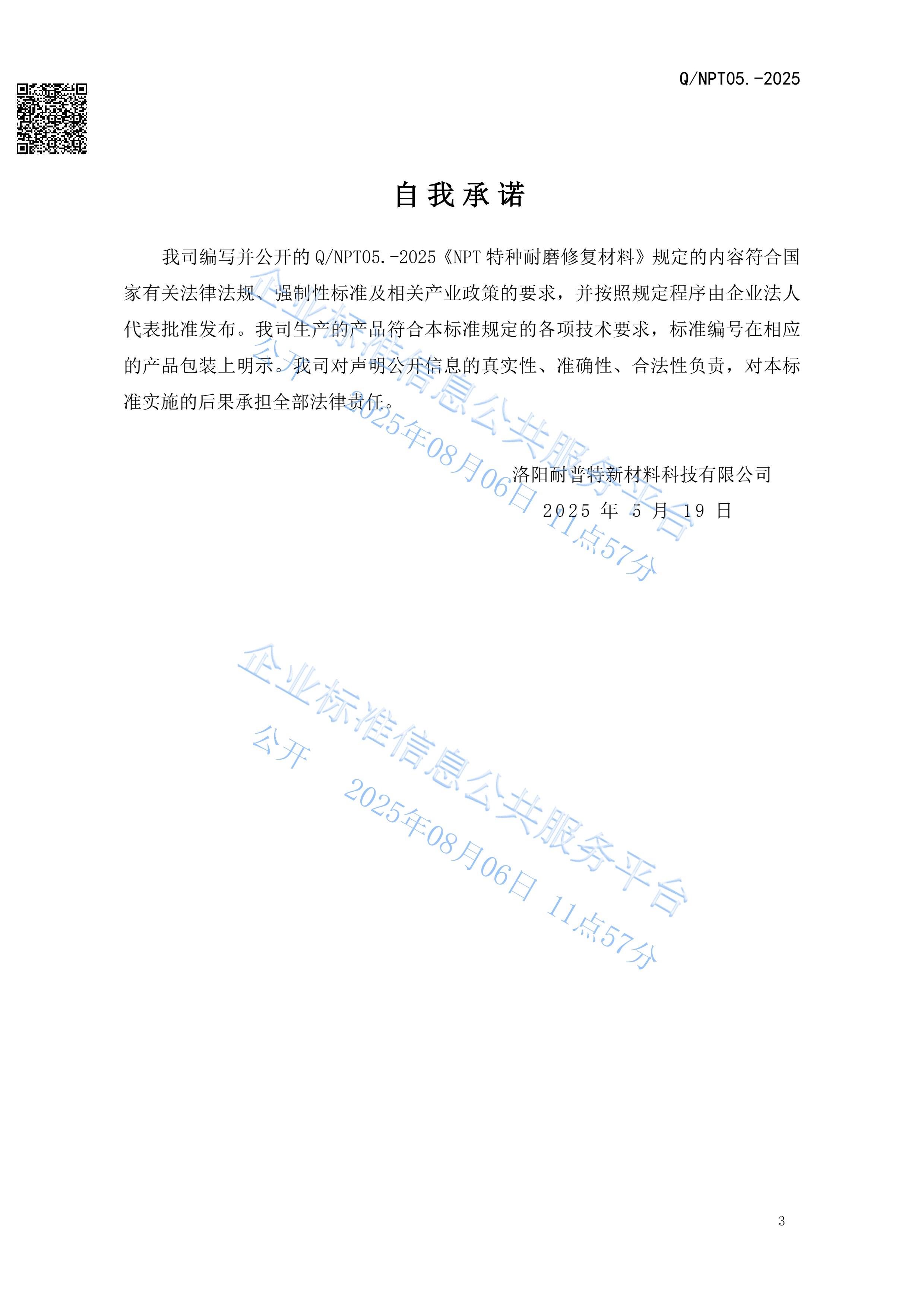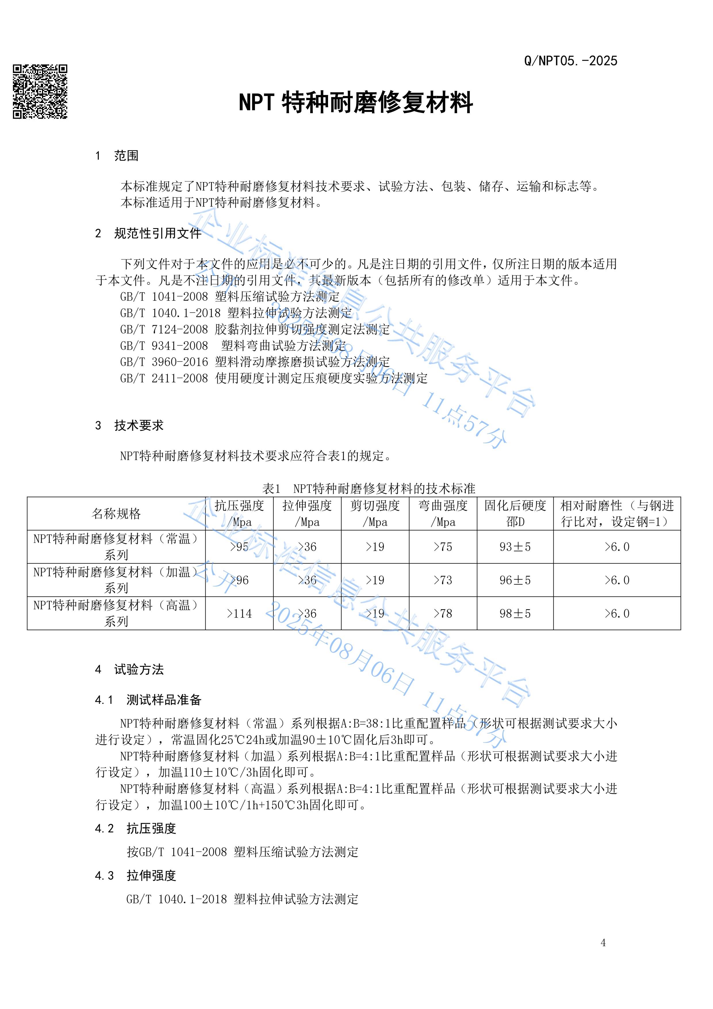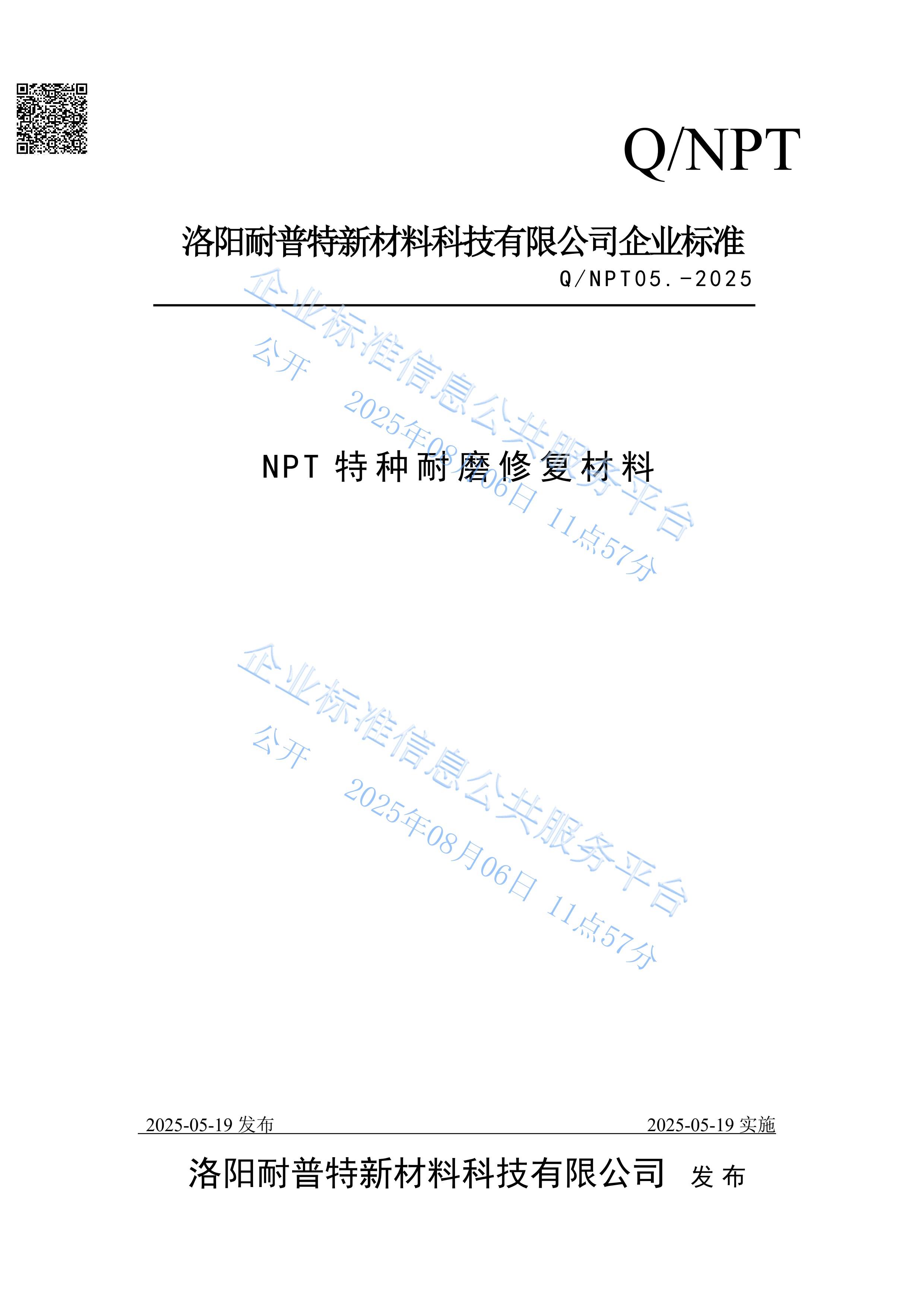 NPT特种耐磨修复材料企业发布标准